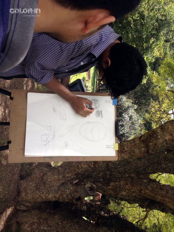 We gathered at Lalbagh Botanical garden Bangalore in the morning and started the session by finding an answer to the term ART! Where our young artist mentor was helped us to solve by saying “ART is what you say”. It’s all each individuals imagine and description! We were studying fundamentals of line drawing and finding it’s importance for flow of hands and to get the output perfect !